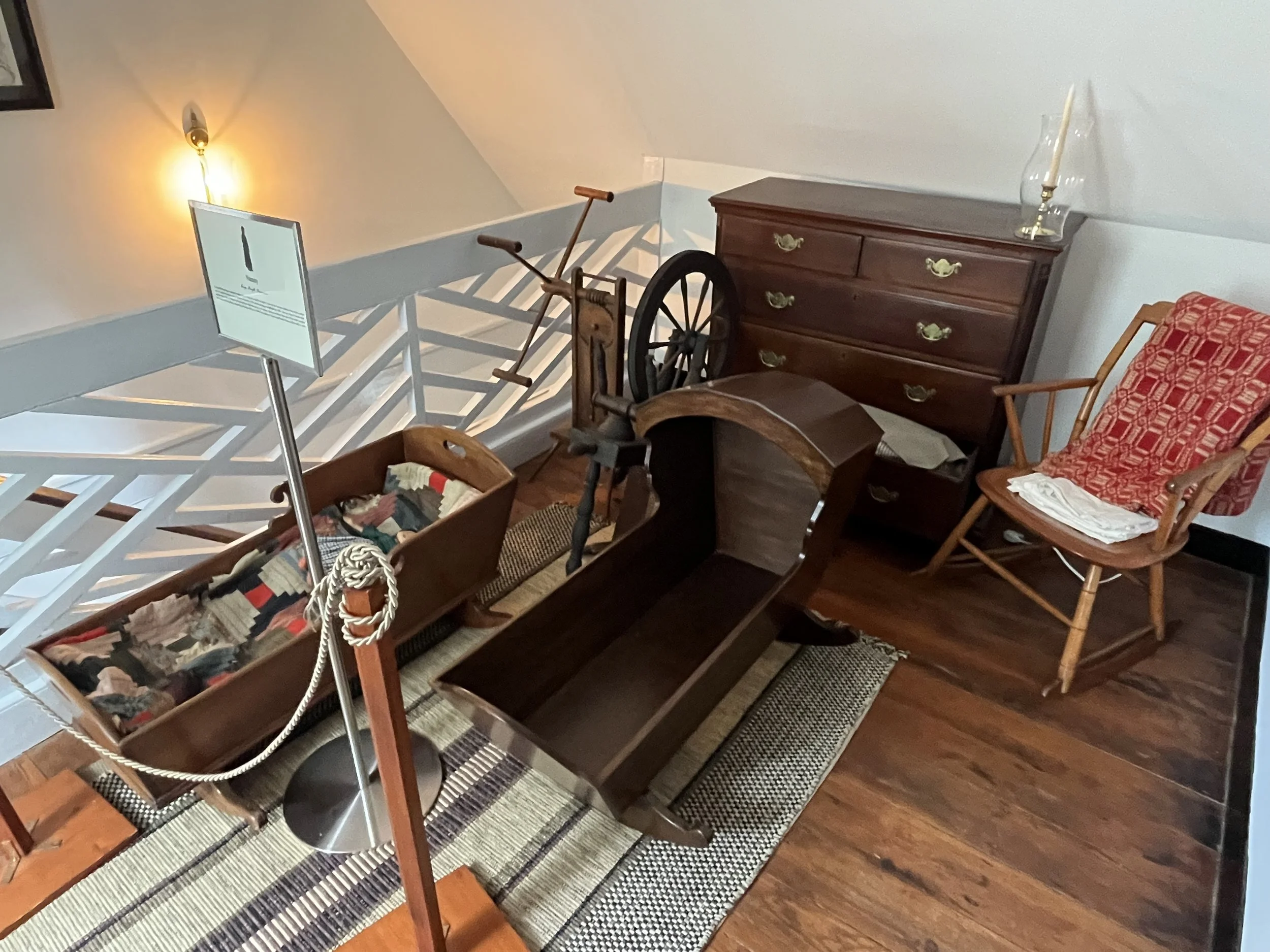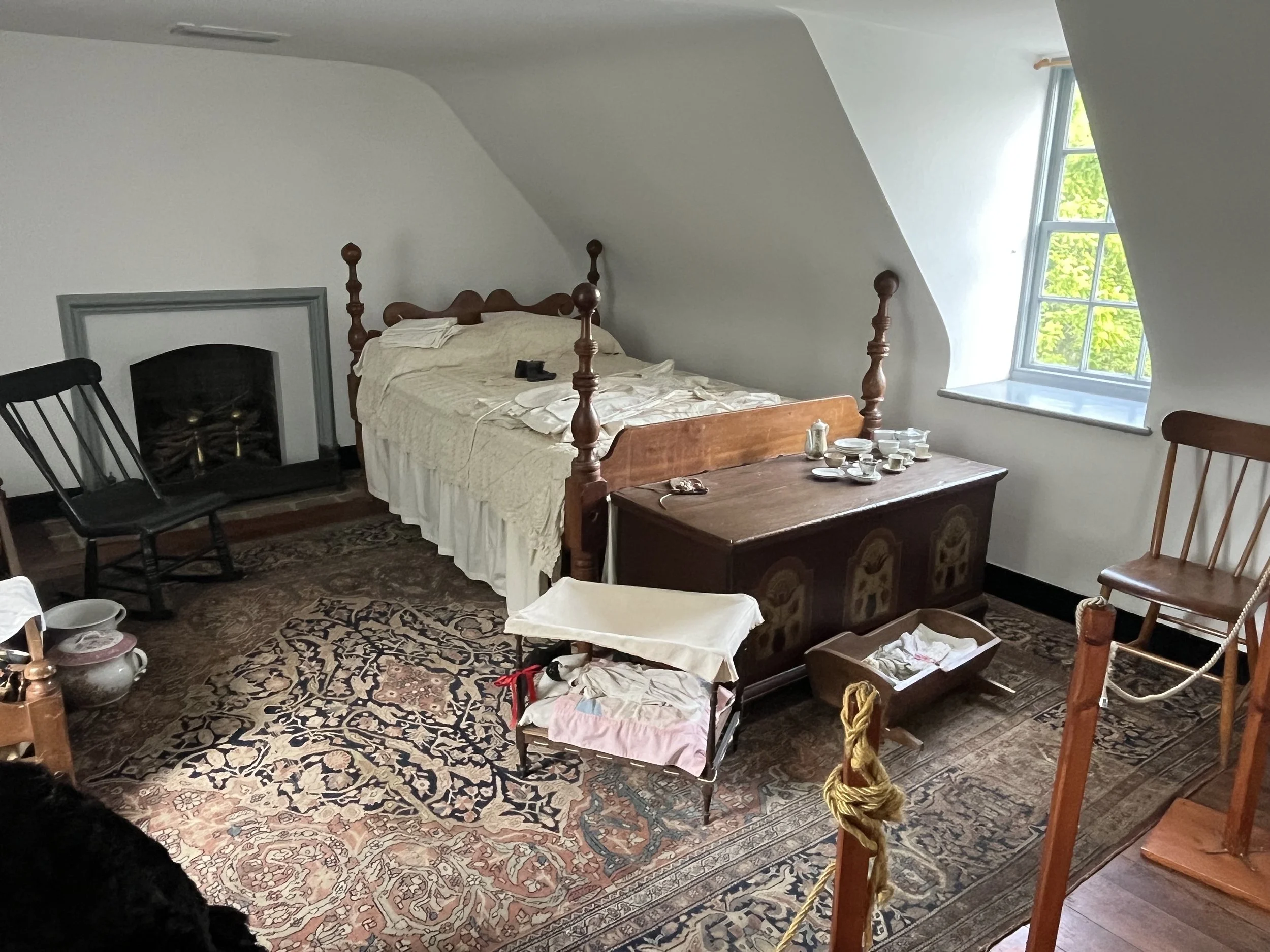The Prestons had 12 children, 11 of which lived into adulthood - 5 boys and 7 girls. Ann Nancy was the only Preston child to die and was the first burial in the Preston Family Cemetery in 1782. The first child to be born at Smithfield was James Patton Preston (portrait in the Main Passage) on June 21, 1774. James was the 8th child of William and Susanna. The room we interpret as the children’s room may have been the girls’ room and the boys would have slept in the rooms across the hall, where the administrative offices are now located.
