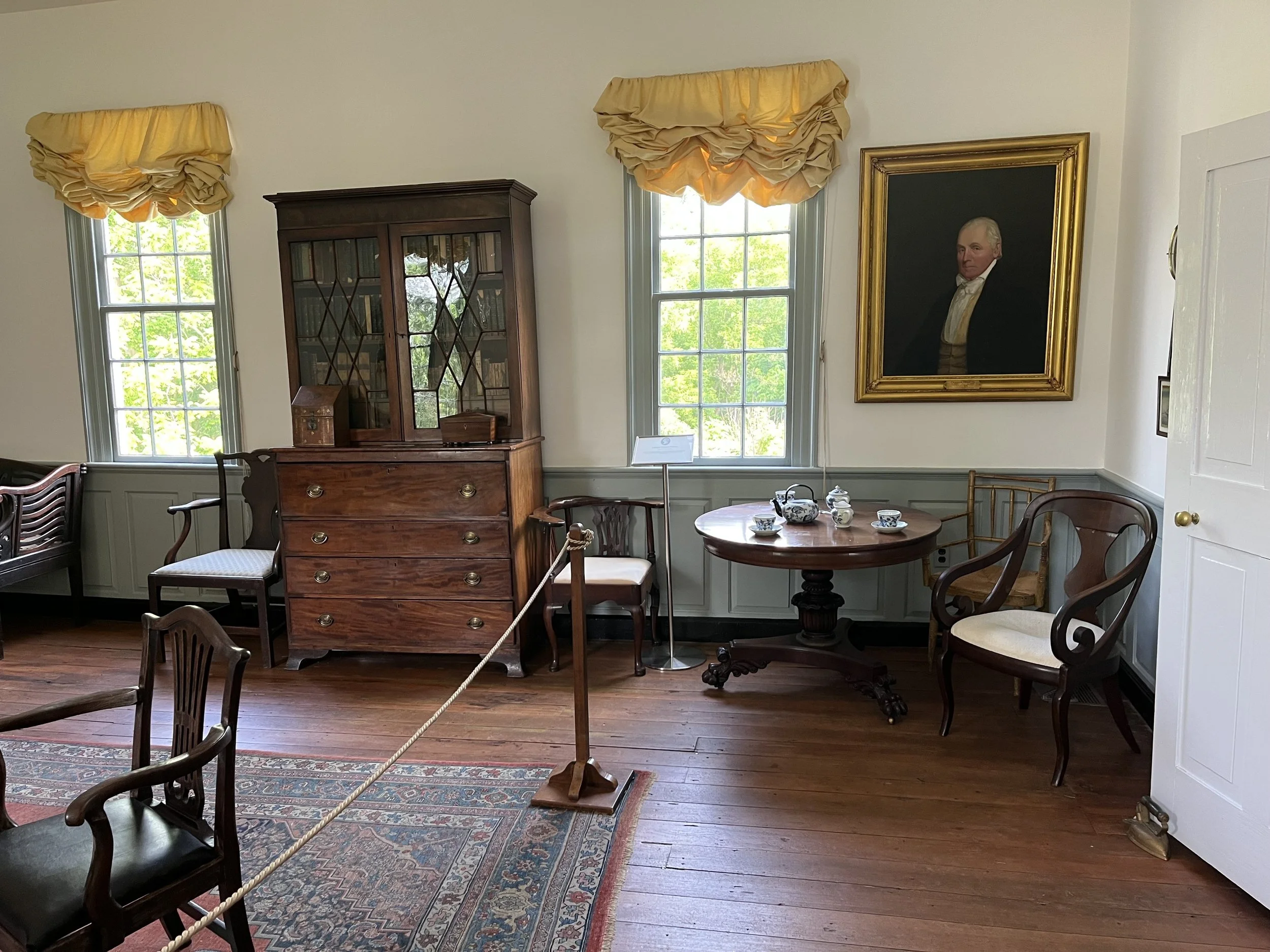 This Drawing Room includes opulent design features meant to impress guests at Smithfield - many of these design features, like the Chinese Chippendale stair railings and the Drawing Room Fireplace, are items that Preston saw during his time in Williamsburg and had replicated in his home.
